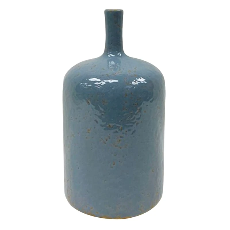 Modern farmhouse meets At Home prices in Honeybloom, our exclusive new brand that celebrates life lived together. This 9.5in. Emily blue bottle ceramic vase is a perfect size to place anywhere in your home. With its unique shape, color and with a bit of a rustic look near the bottom of the vase, you are sure to have a nice and funky design for your home. Add faux plants and flowers to elevate your home decor.