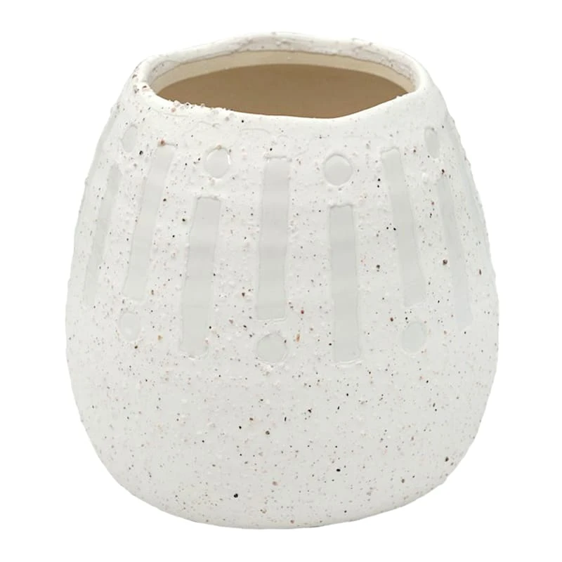 Modern farmhouse meets At Home prices in Honeybloom, our exclusive new brand that celebrates life lived together. Our 5in. White sanded ceramic vase is a great addition to any room in your home. This white ceramic vase has a textured and soft glossy surface perfect if you are looking to add a bit of fun in your home. Place this anywhere to enhance the elegance and modern life in your home.